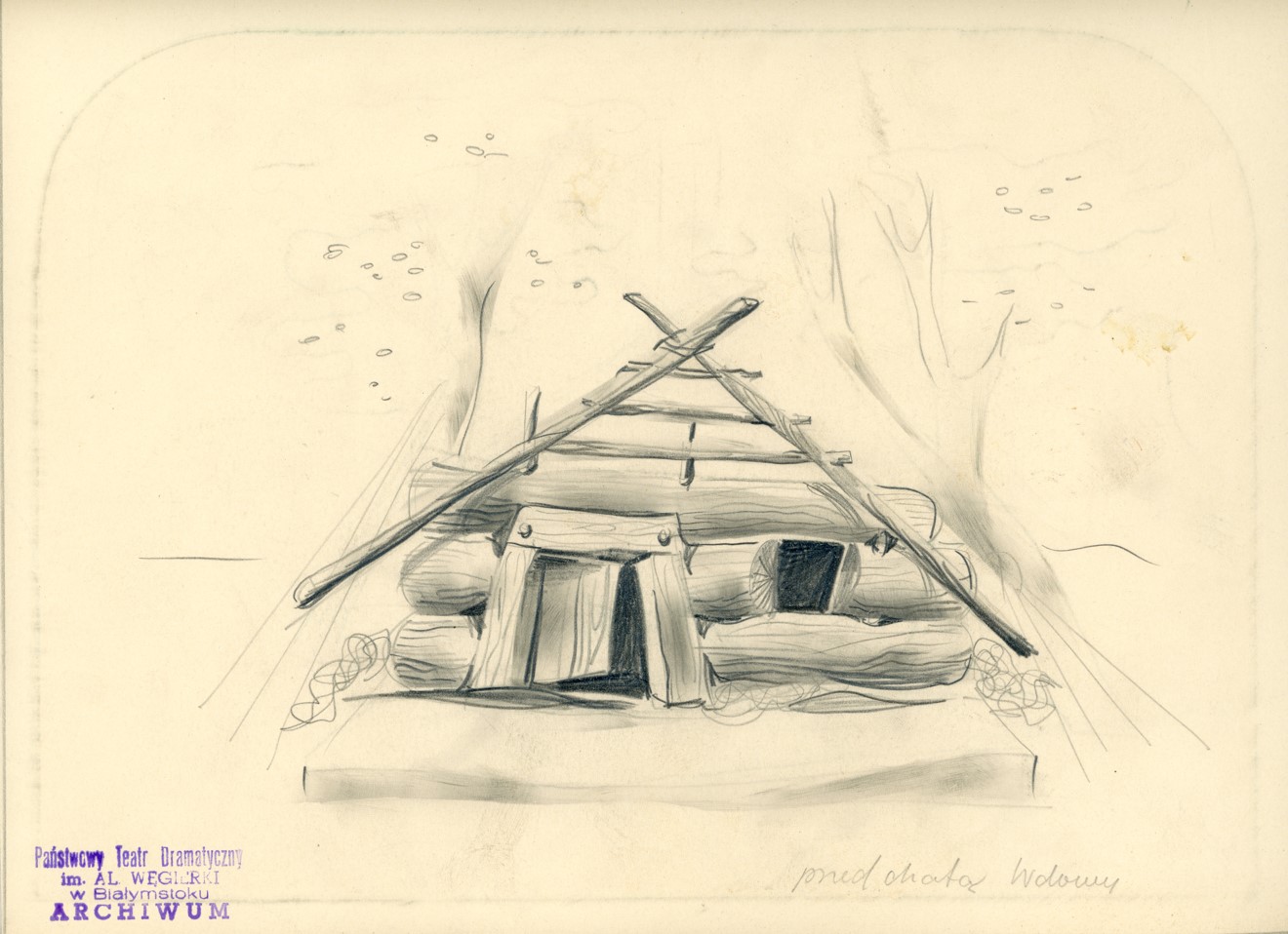 Opis: Projekt scenografii do spektaklu „Balladyna” z 1949 roku autorstwa A. Jędrzejewskiego i W. Lange