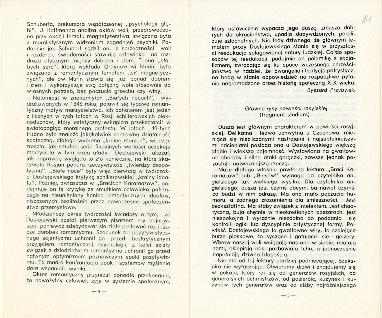 Opis: Piąta strona programu do spektaklu „Białe Noce” – 01.10.1984 r.
