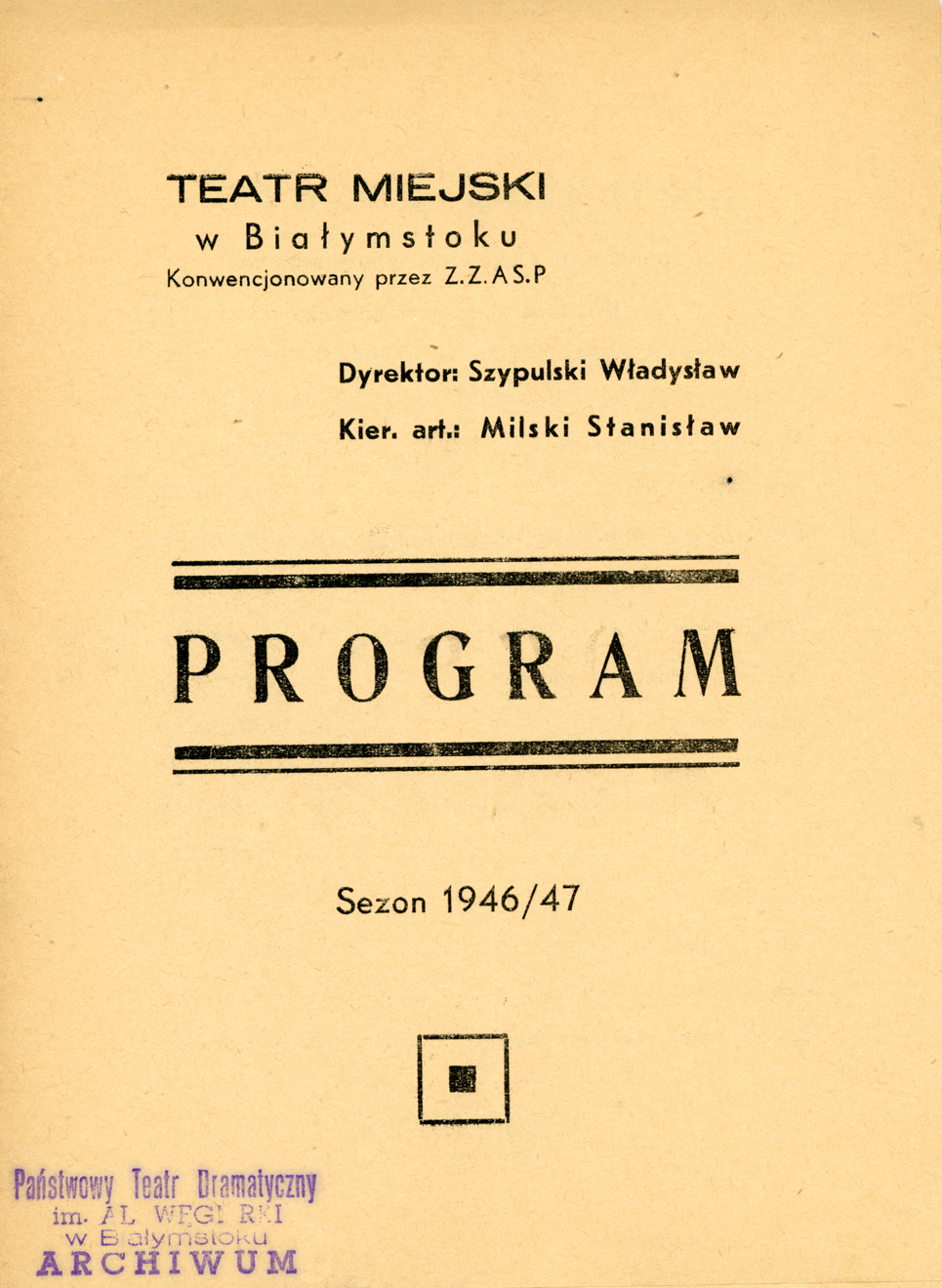 Opis: Pierwsza strona programu do spektaklu "Intratna posada" - 27.11.1947