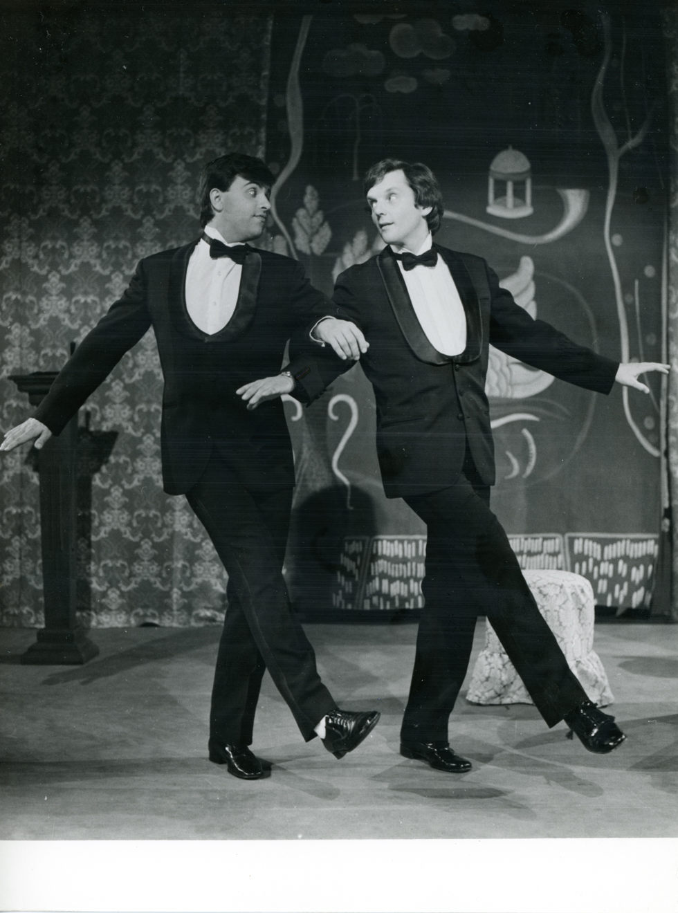Opis: Spektakl „Lord z walizki” Oscar Wilde, tłum. L. J. Kern i W. Krzemiński, premiera 09.10.1983 Białystok, reż. i scen Jerzy Ukleja, muzyka Tadeusz Dobrzański, aranżacja Janusz Papaj na zdjęciu: Krzysztof Nowik (Algernon), Wiesław Krupa (Jack Worthing)