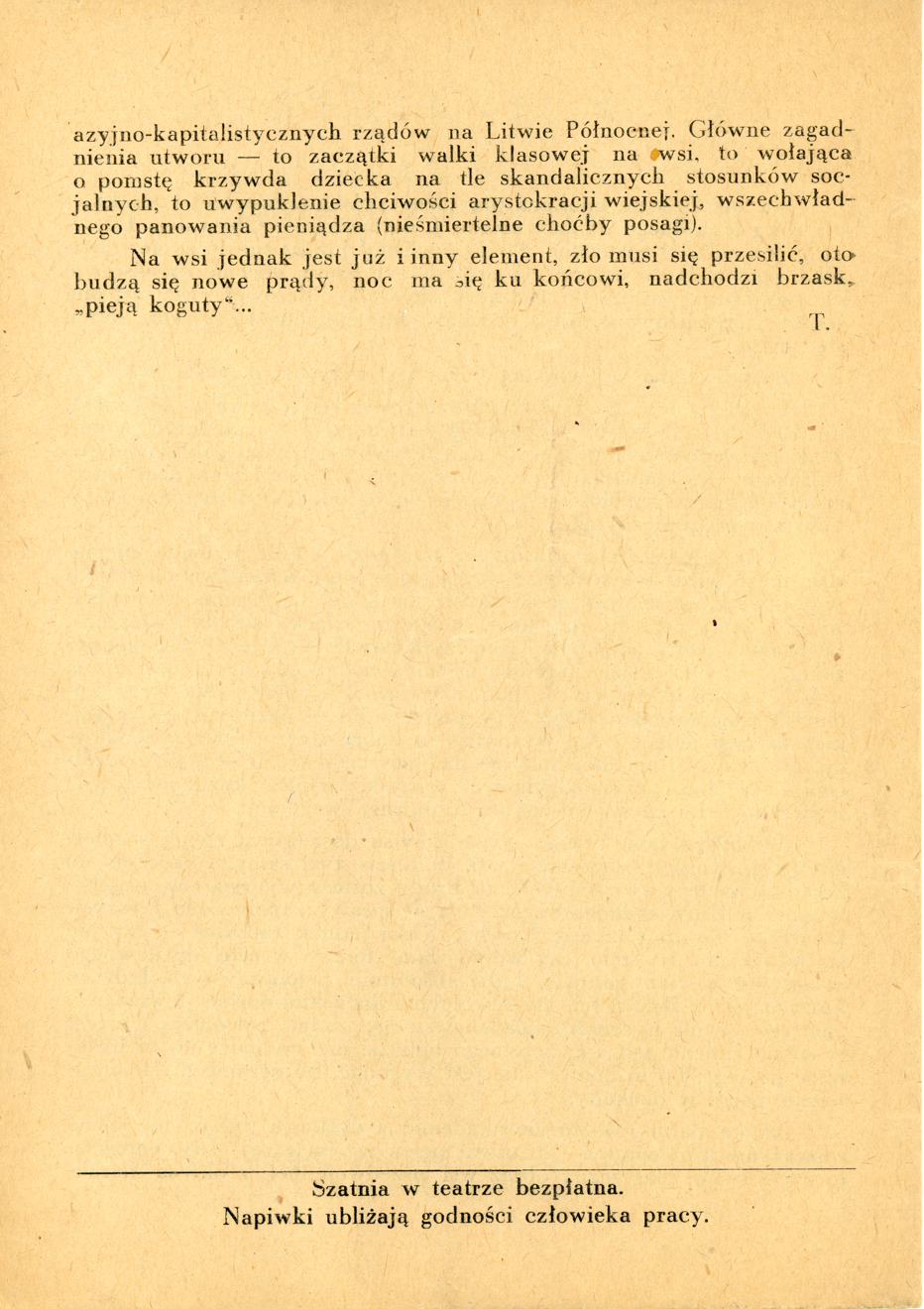 Opis: Czwarta strona programu na rok 1950 ze spektaklem „Pieją koguty”
