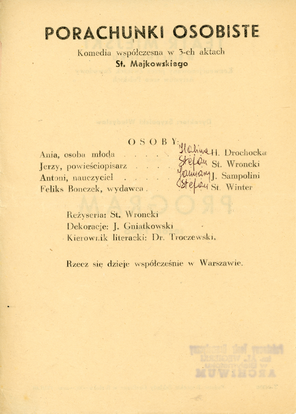 Opis: Druga strona programu do spektakli „Porachunki osobiste” – 15.01.1948
