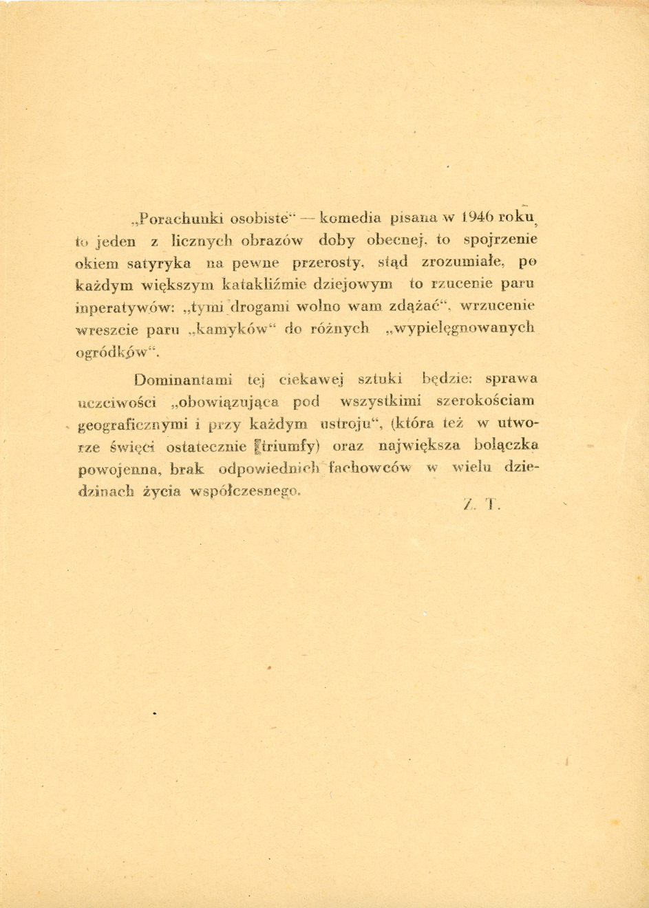 Opis: Trzecia strona programu do spektakli „Porachunki osobiste” – 15.01.1948