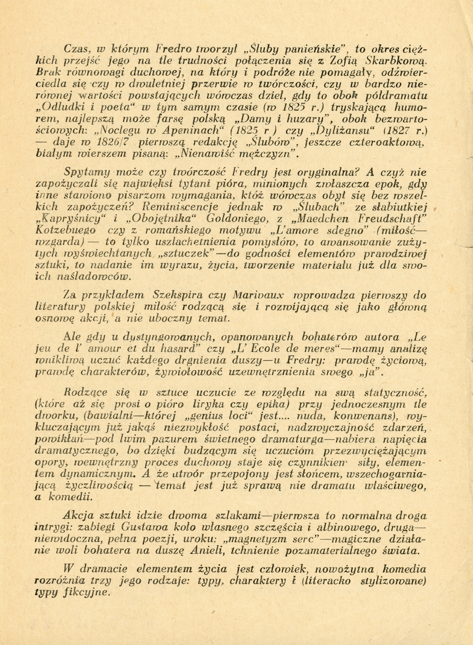 Opis: Trzecia strona programu ze spektaklu „Śluby Panieńskie” – 21.10.1948