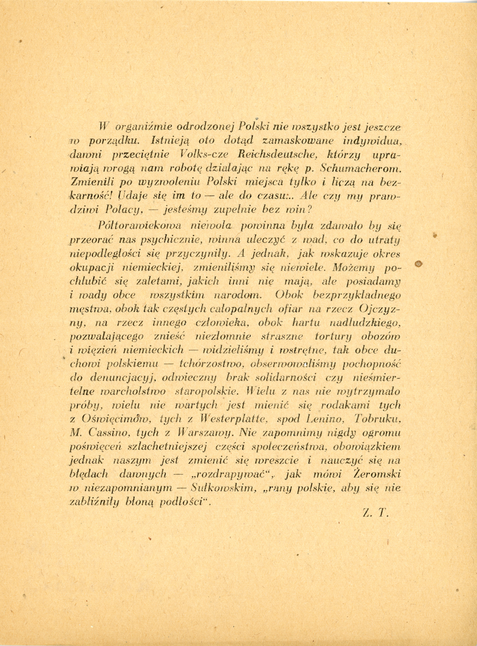 Opis: Trzecia strona programu do spektaklu „Wyrok” – 06.12.1947