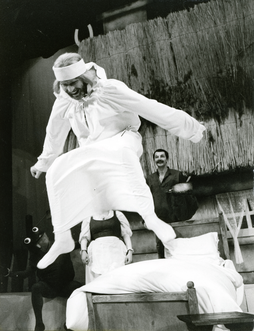 Opis: Spektakl „Żabie czary” Henryk Matus, premiera 07.01.1984 Białystok, reż. Tadeusz Kozłowski, scen. Adam Miriam, oprac. muz. Zbigniew Porzycki, na zdjęciu: Zbigniew Borek (Filutek), Krzysztof Nowik (Królewicz Żaba), Miriam Aleksandrowicz-Kraśko (Małgosia), Andrzej Redwas (Drwal Andrzej)