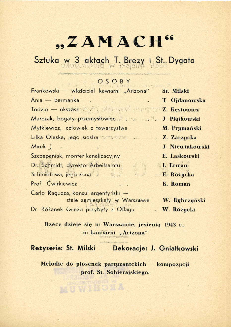 Opis: Druga strona programu do spektaklu „Zamach" - 11.10.1946